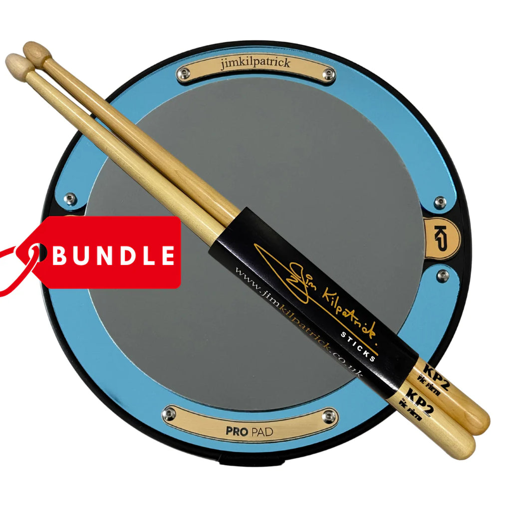Jim Kilpatrick Blue Mirror PRO PAD & KP Drumsticks Bundle