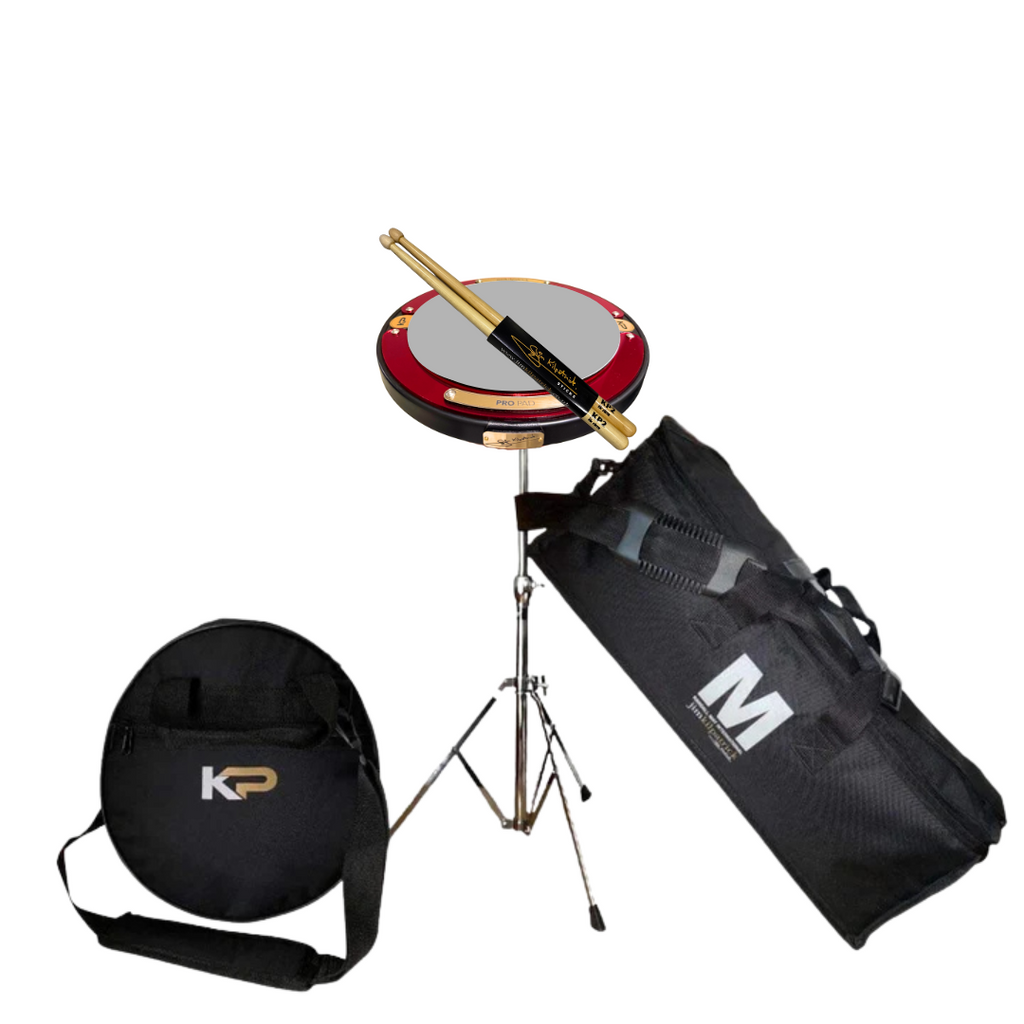 ENGRAVED Mirrored Red PRO PAD Bundle (Pro Pad / Pad Bag / Lightweight Practice Pad Stand / Practice Stand Bag / Drumsticks)