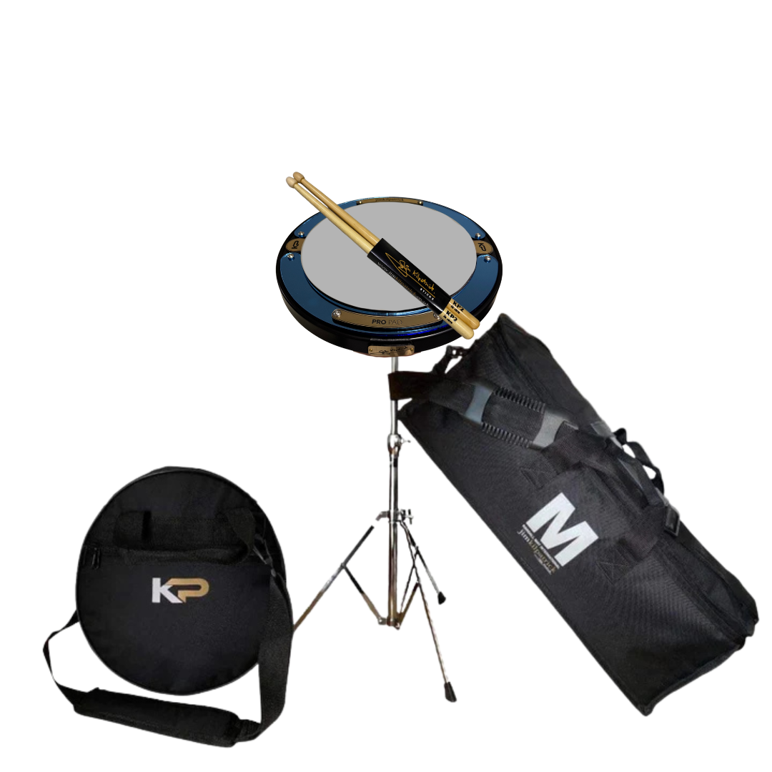Mirrored Royal Blue PRO PAD Bundle (Pro Pad / Pad Bag / Lightweight Practice Pad Stand / Practice Stand Bag / Drumsticks)